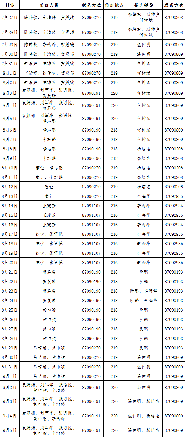 4. 值班期间,注意防火、防盗,如遇紧急、重要事项或突发事件,要立即向带班领导和学校总值班室(87082809)报告并妥善处置。